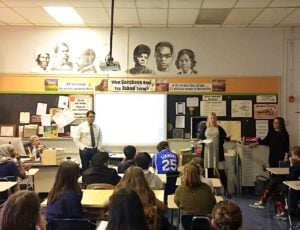 Once a month during the school year, attorneys at Locks Law Firm visit a classroom at Girard Academic Music Program (GAMP), a Philadelphia public school, to lead a lesson on civics, legal systems and civic participation. This endeavor is in conjunction with the Advancing Civics Education (A.C.E.) program, a program launched by the Philadelphia Bar Association in partnership with public schools in Philadelphia to provide supplemental civics education to public school students.